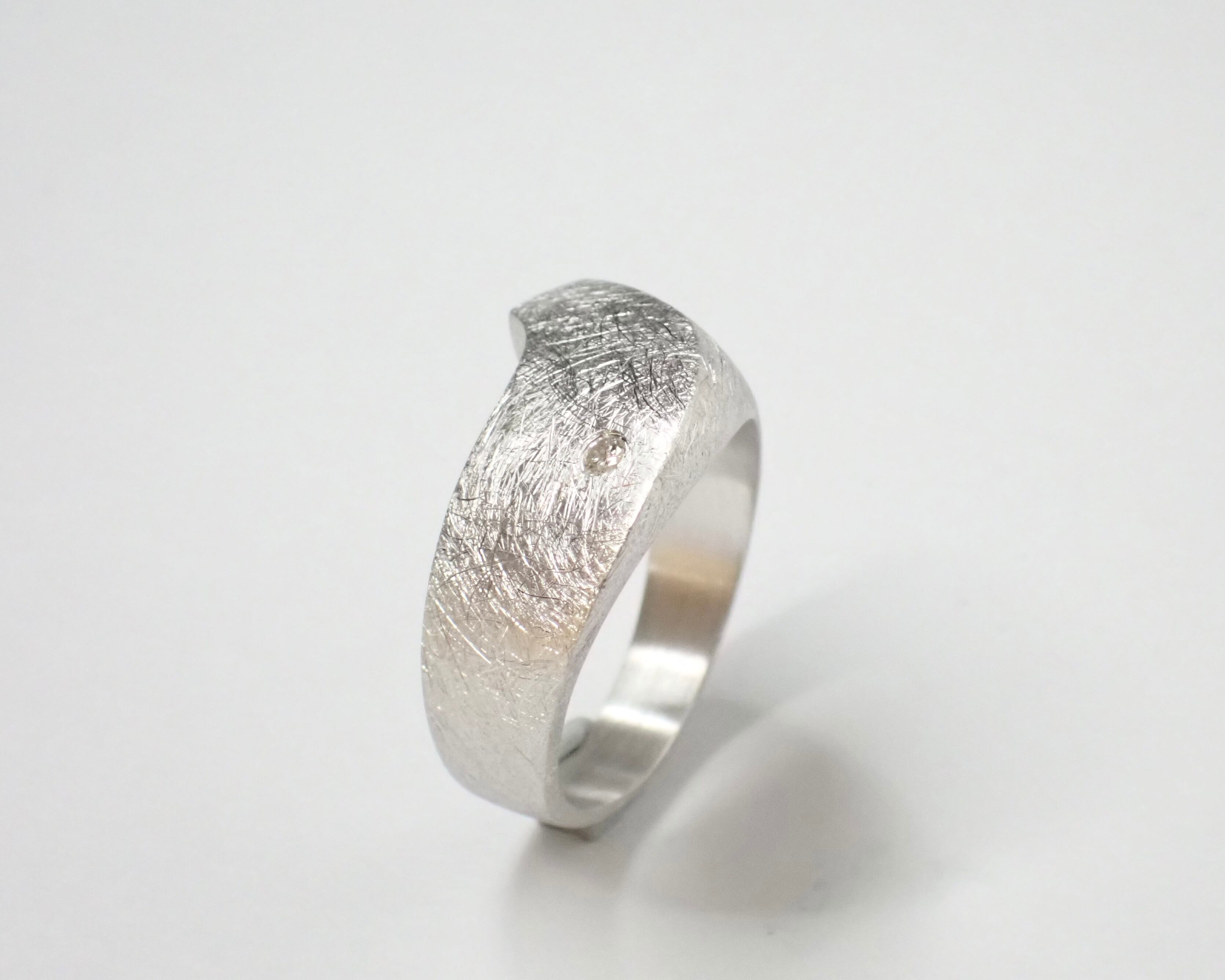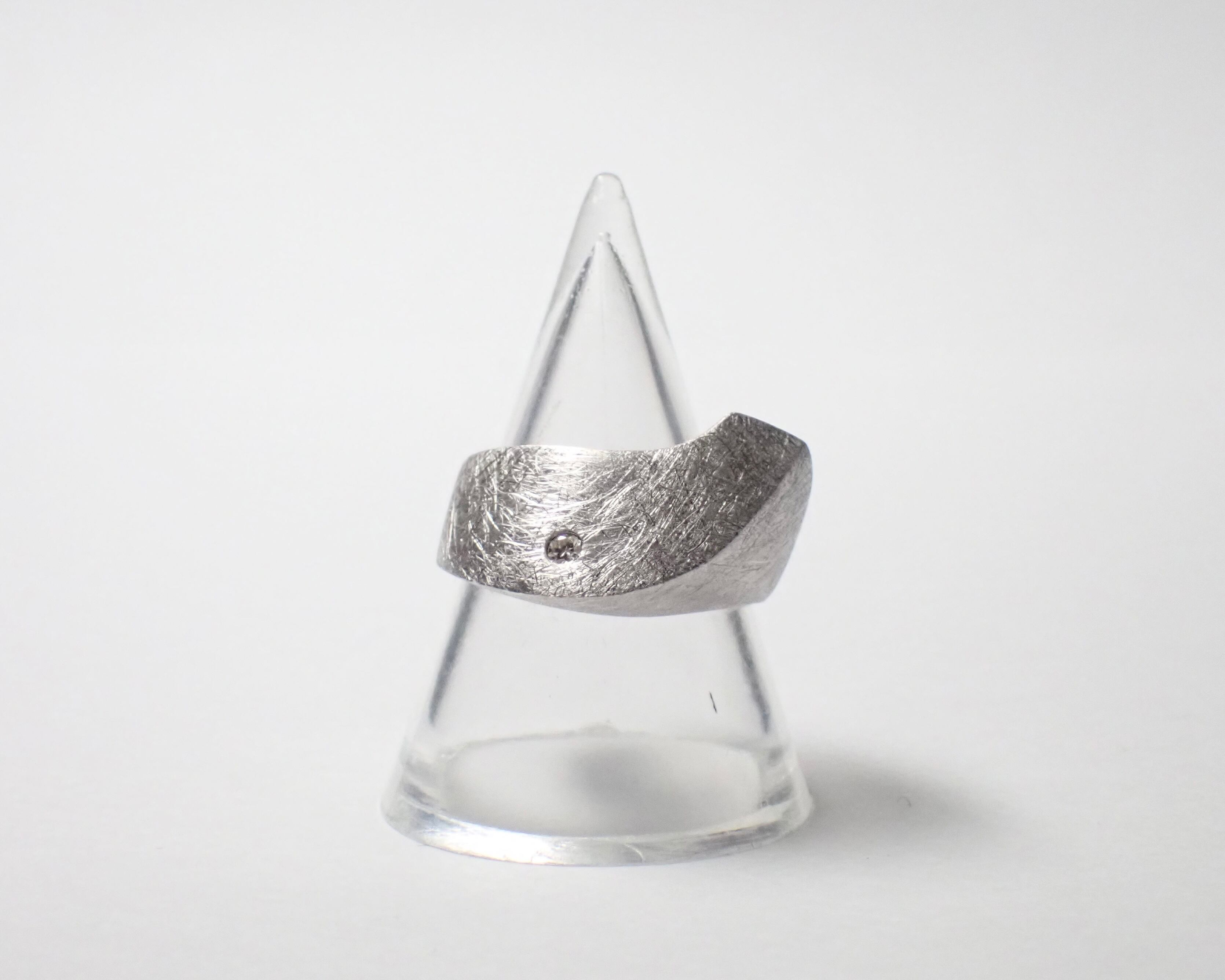 立体のフォルムが美しく、アシンメトリーでどこから見ても違った形に見えるデザイン性のあるリング。