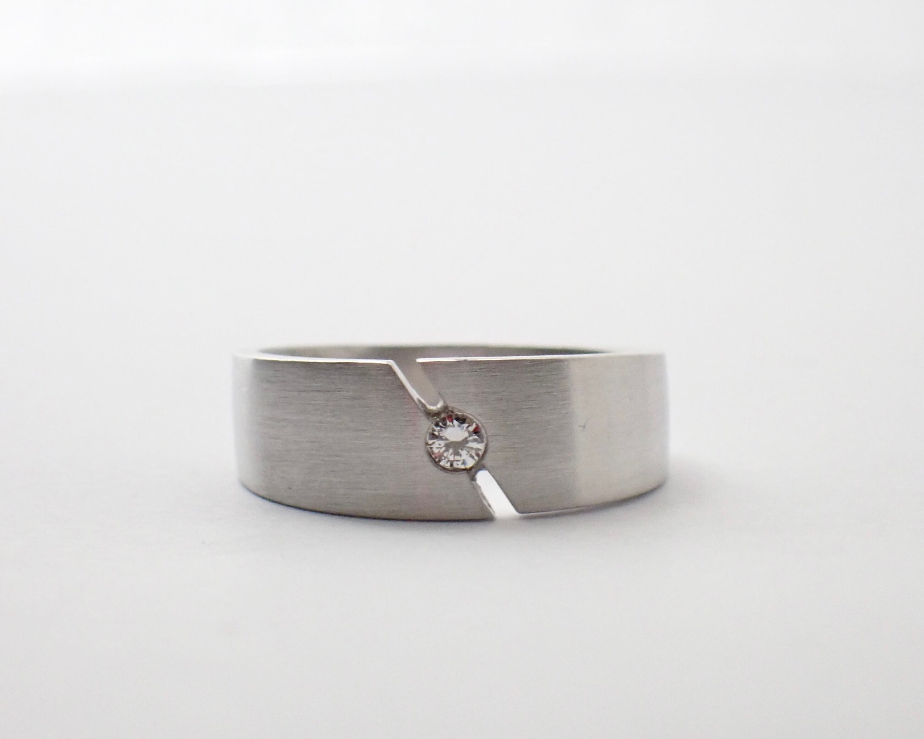 リングトップのスラッシュカットの中に天然ダイヤを施しており、スタイリッシュな仕上がりです。